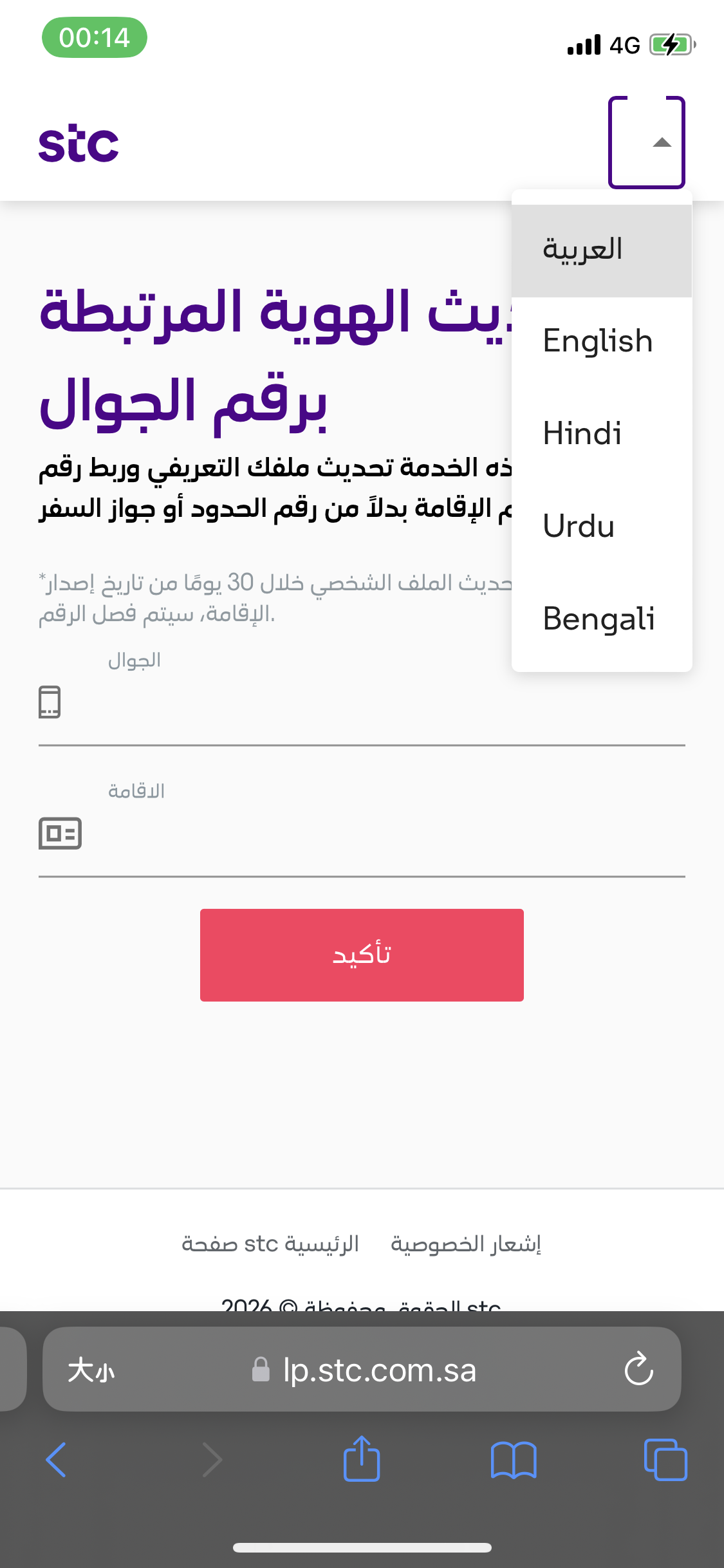需要再次输入手机号码和Iqama号码,然后STC会下发一个验证码给你,把验证码填写到页面,就完成Iqama绑定工作了